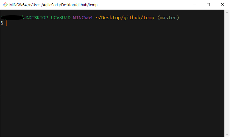 원하는 폴더에 가서 git bash를 켠 상태로 들어가면 위와 같은 창이 나타난다.