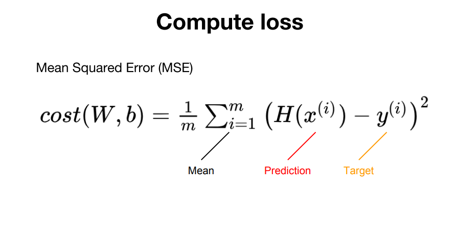 ${cost(W, b) = \frac{1}{m}\sum_{i=1}^{m}(H(x^{(i)}) - y^{(i)})^2}$