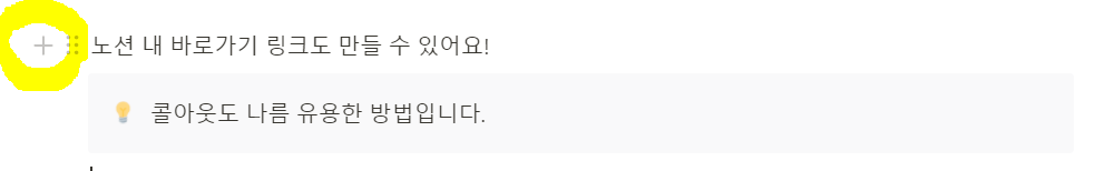 문단과 문단 사이에 블럭을 추가하고 싶을 때에는 위 형광펜 부분의 + 기호를 누르면 손쉽게 문단을 추가할 수 있다.