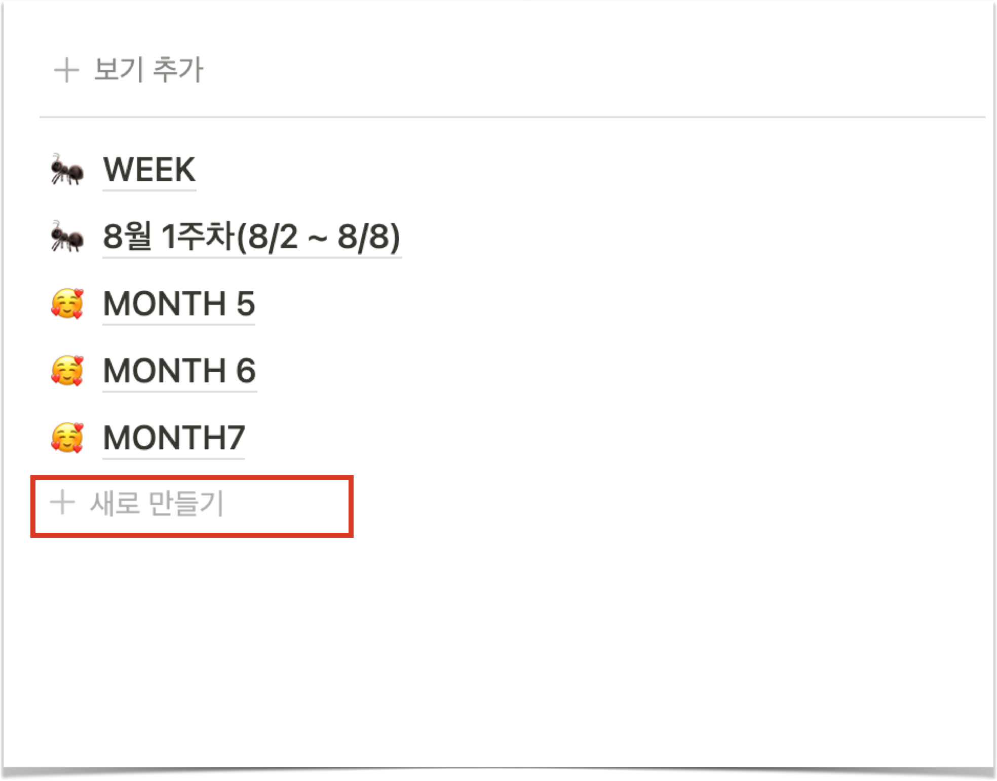 템플릿을 생성하고 편집하는게 간편한 만큼, 템플릿을 사용하는 방법도 간편하다. 아래와 같이 데이터베이스 가장 아래에 새로 만들기를 크릭하면 페이지가 새로 생성되면서 어떤 템플릿을 사용할지 선택할 수 있게 템플릿 목록이 나온다.