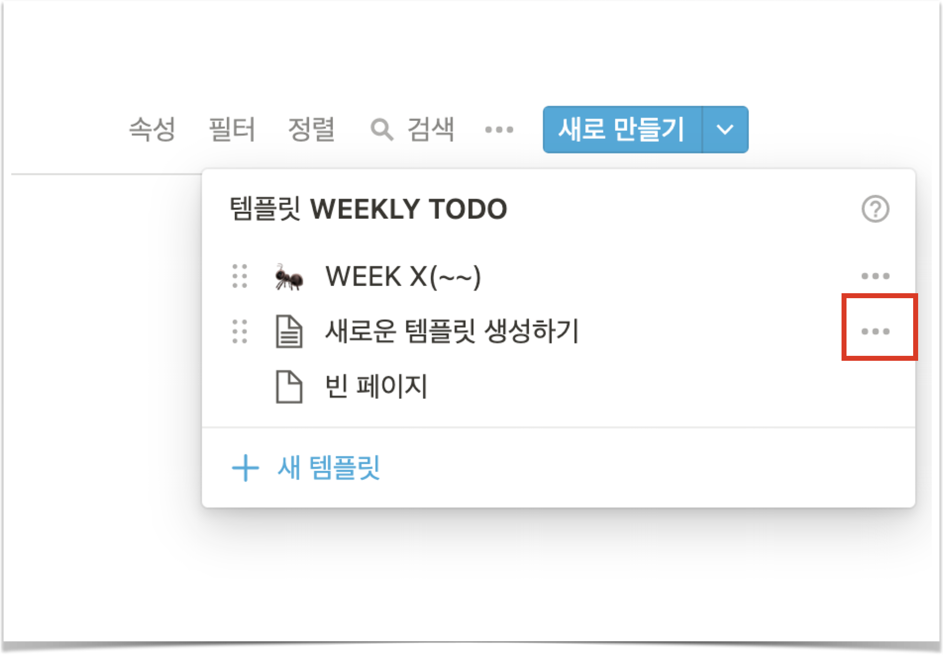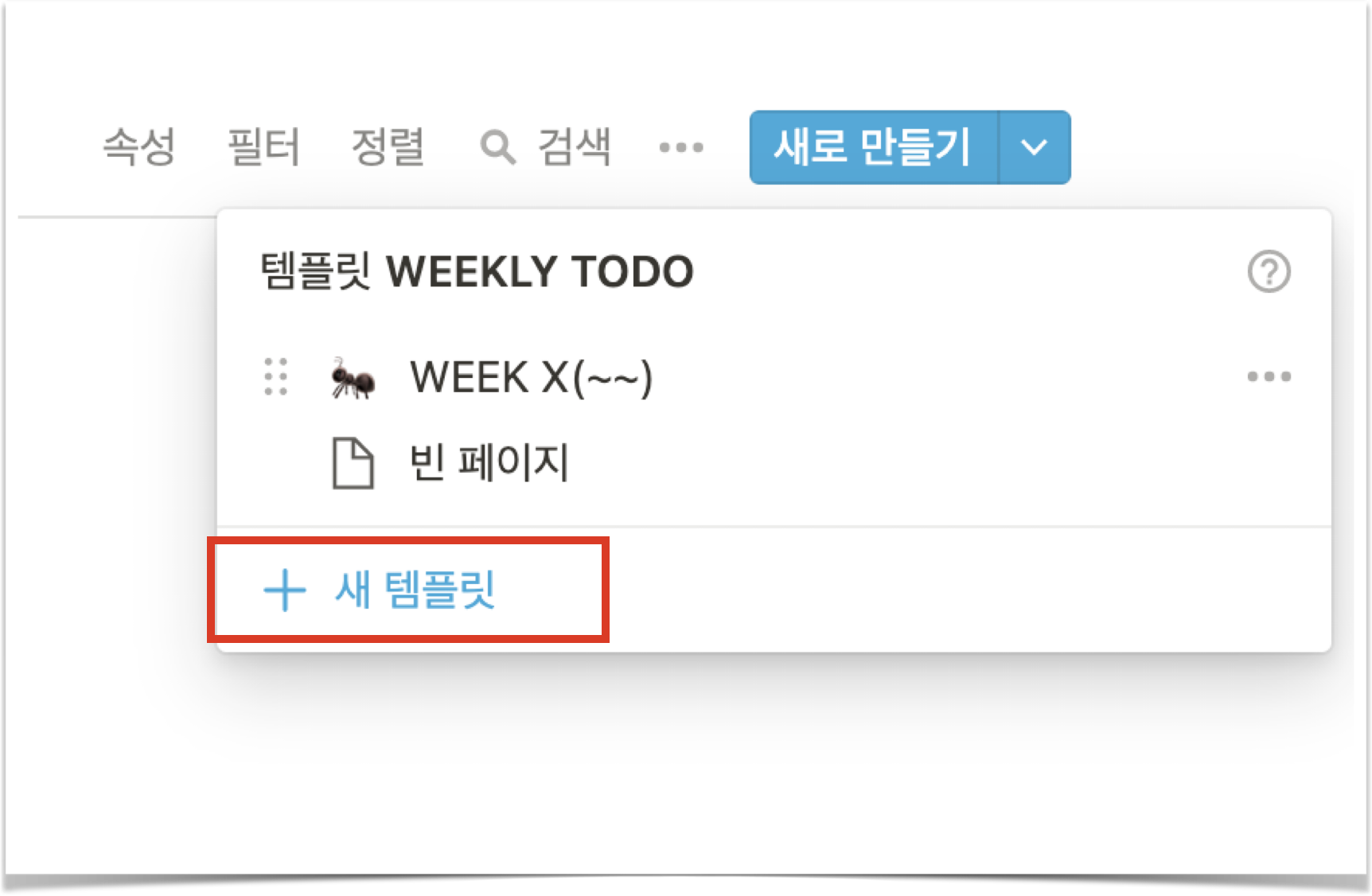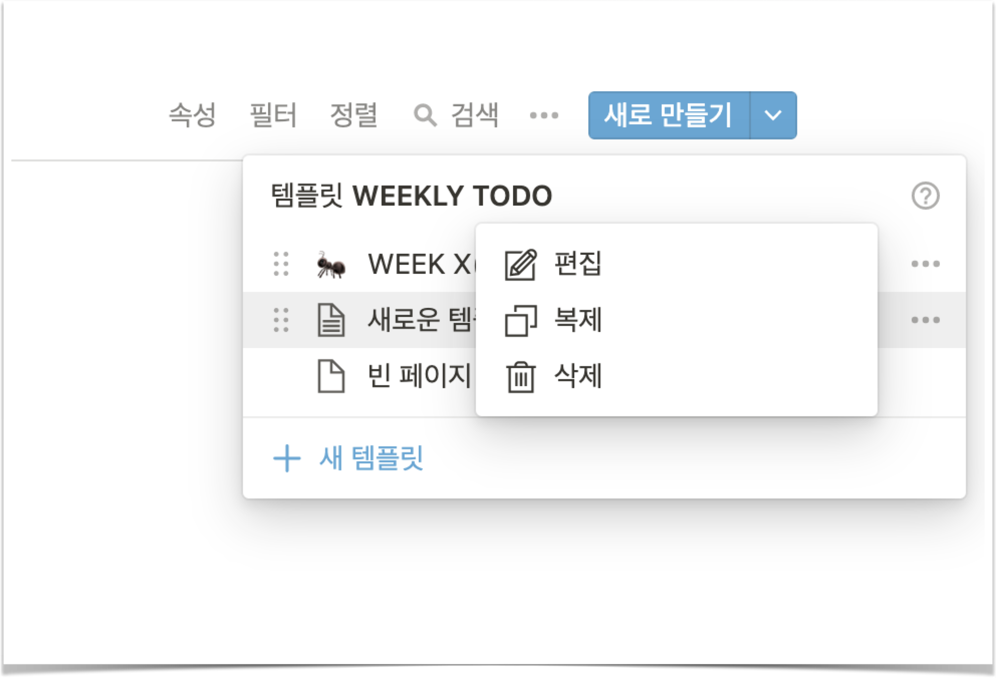 저번 포스팅에서는 데이터베이스에서 정렬과 필터링을 사용하는 법에 대해 이야기를 했었다. 오늘은 데이터베이스 템플릿 생성하는 법에 대해서 이야기해보려 한다.
