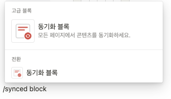 간혹 동일한 내용의 텍스트를 여러 곳에 작성해야할 때가 있다. 동일한 내용의 텍스트를 여러군데에서 동시에 수정해야할 때, 동기화 블럭을 사용하면 불편함을 감수할 수 있다. 해당 기능은 6월 말에 나온 비교적 최신 기능이라고 한다.